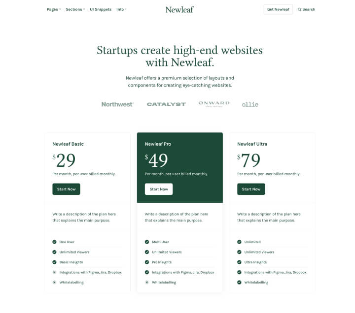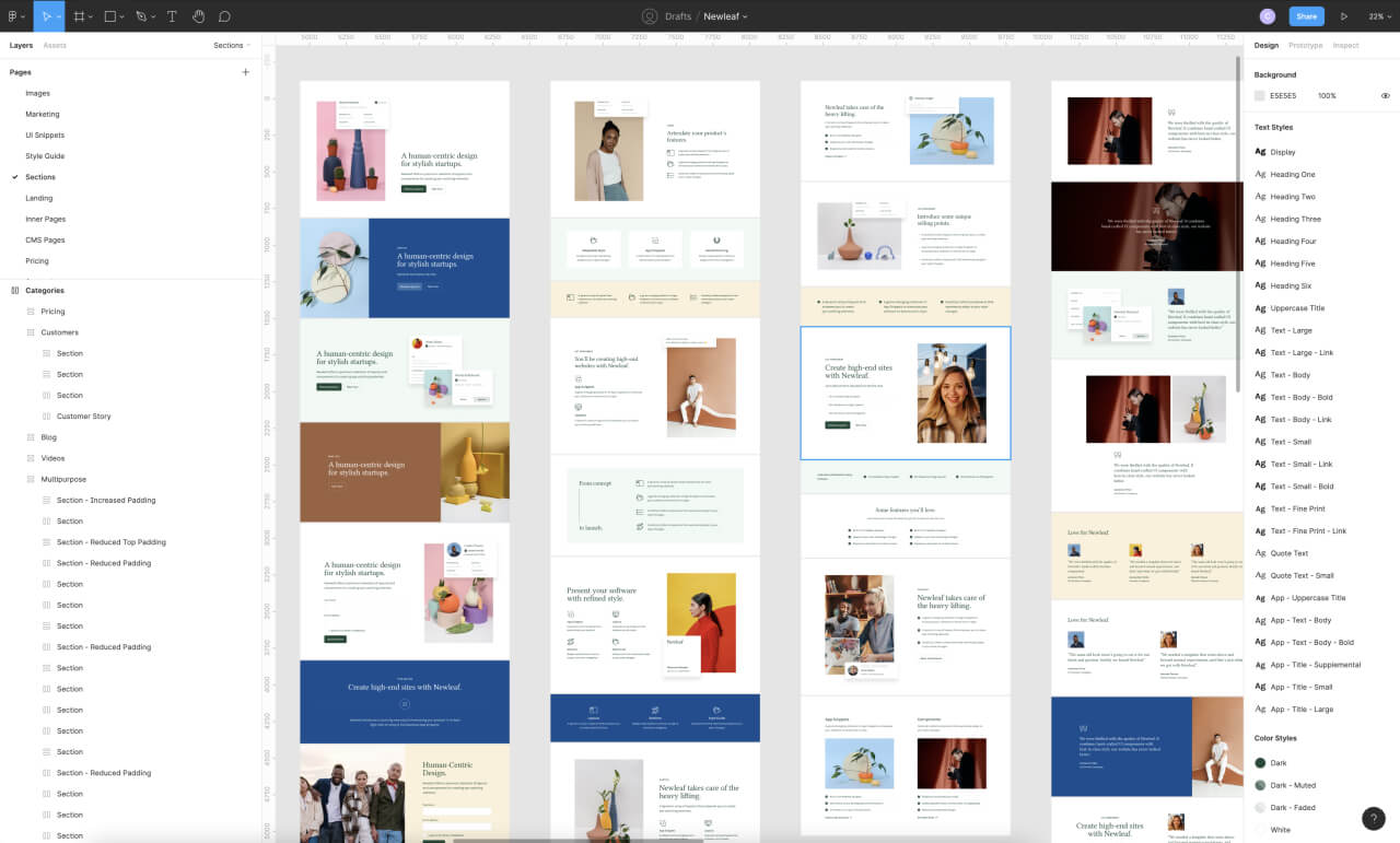 The complete Newleaf design is available as a Figma file to customers who purchase the template.